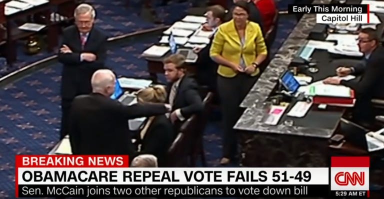 I should also note — because historic perspective is always helpful — that House Republicans tried to repeal the ACA nearly 70 times, culminating in the biggest failure of all, with McCain’s rejection of the attempt, in 2017.